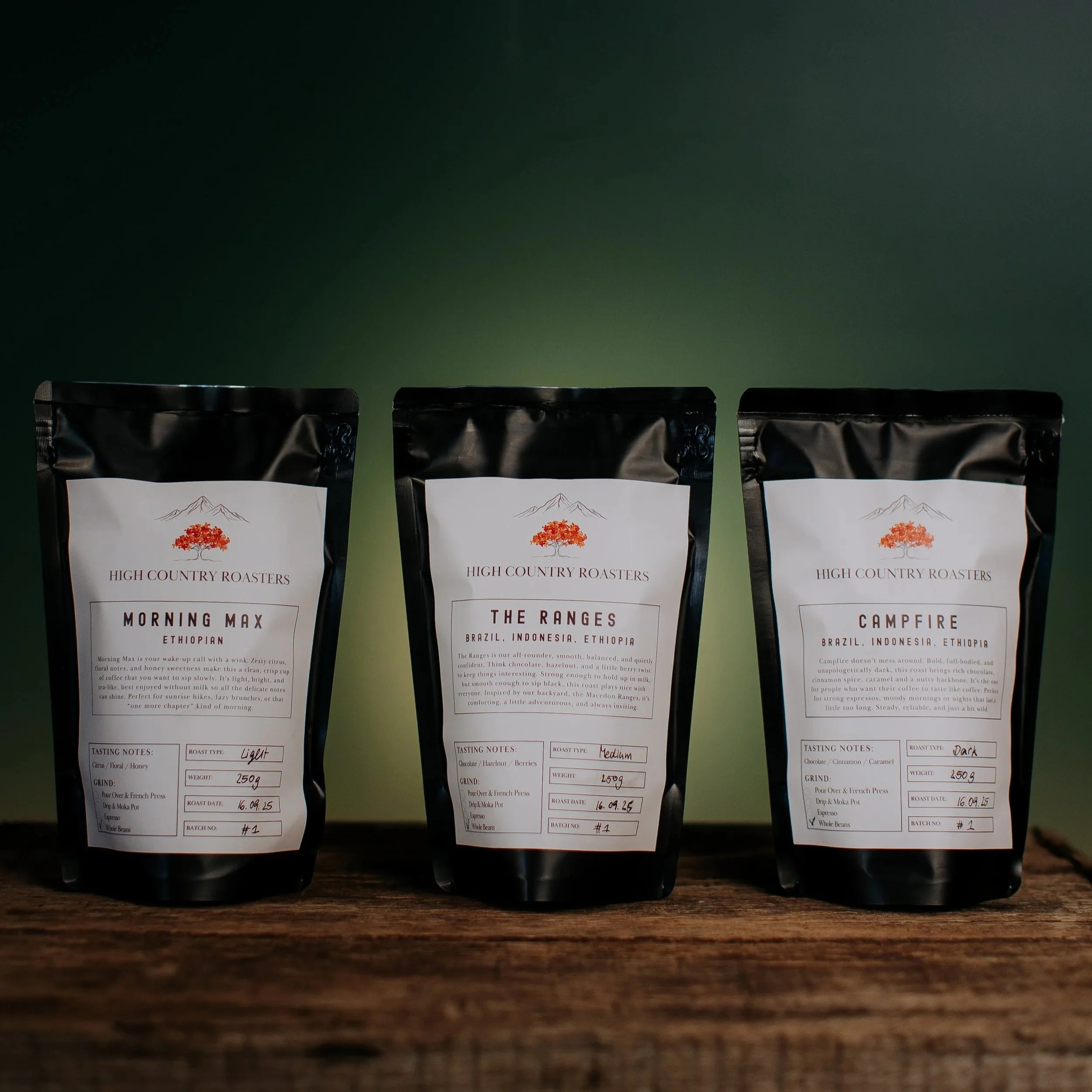 Shop Categories: All Coffee Apparel All | Coffee | Apparel | Oak & Ember - Decaf from $35.00 High Country Bundle $60.00 Campfire - Dark Roast from $24.00 The Ranges - Medium Roast from $24.00 Morning Max - Single Origin Light Roast from $24.00 Pour Over Coffee Bags $35.00 Unisex t-shirt from $37.50 Unisex Hoodie $70.00 Toddler jersey t-shirt $25.00 Kids fleece hoodie $65.00